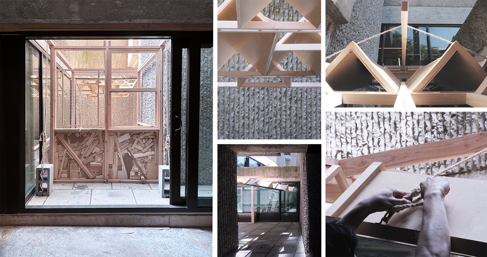 A pavilion built of materials found within the studio and host city of Rome, the installation exhibits several pieces by artist Se Young Park. The project investigates the cultural discourse and ambiguity of what it means and feels to be a foreigner, using Roman found materials to create traditionally Korean patterns and sequences.