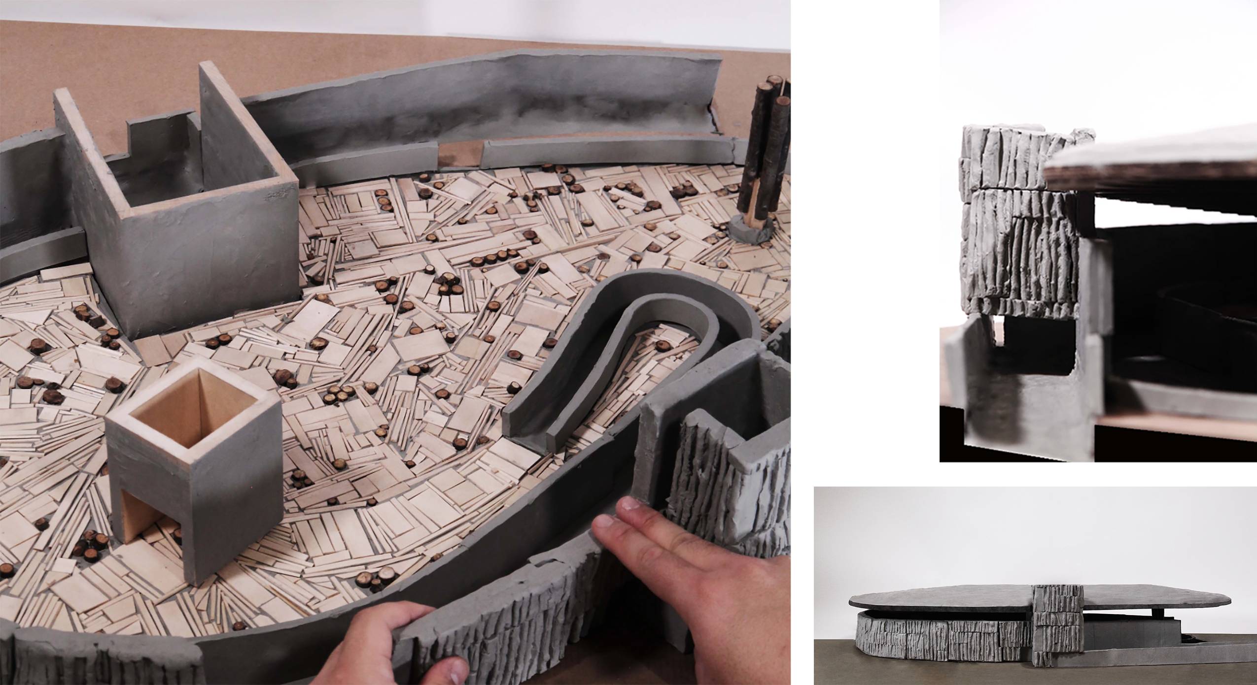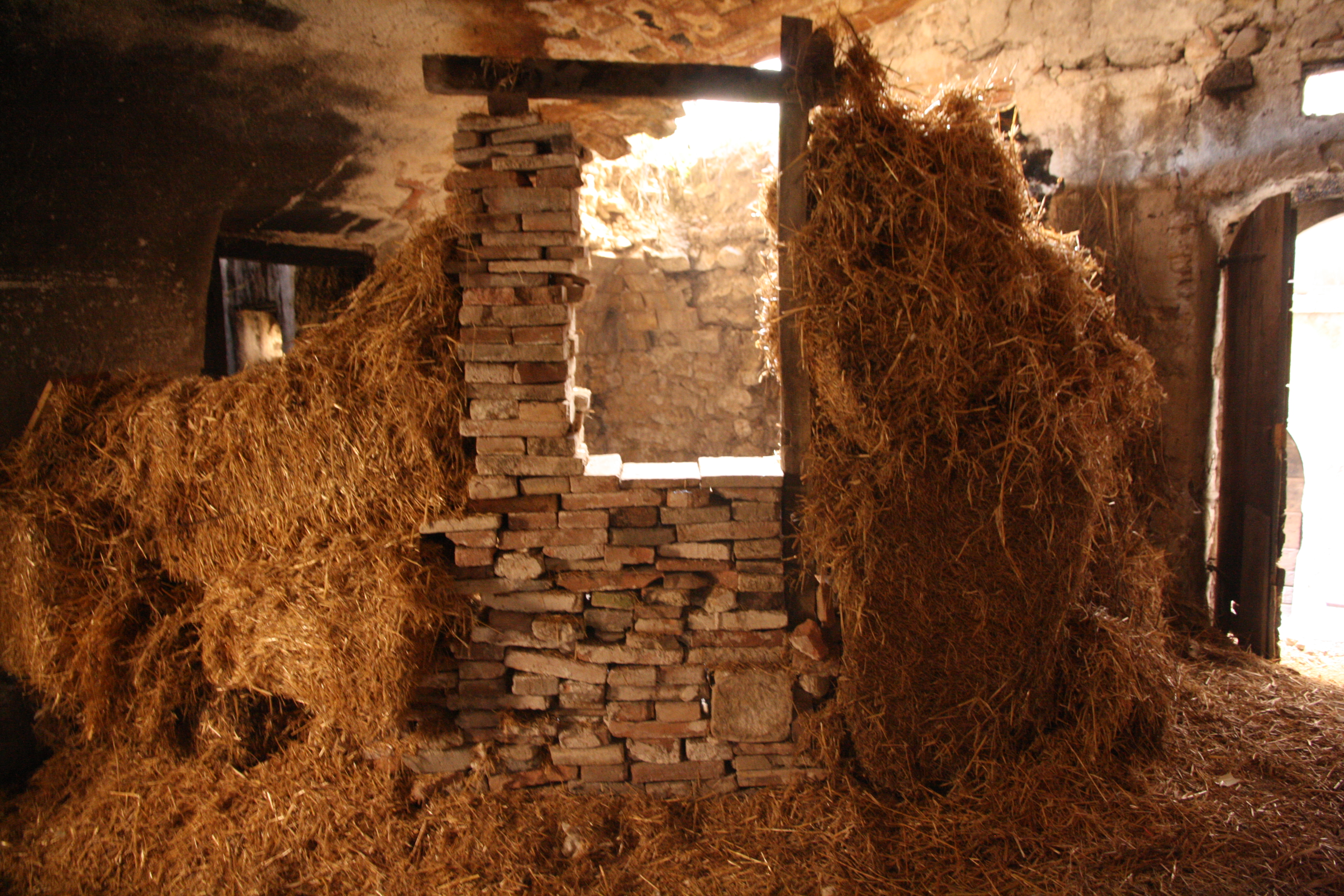 Castelvecchio Calvisio, Italy was hit by a large earthquake in 2009 leaving traces of ruins throughout the old city. Revealing a deep and uncanny underground space, it re-connects what was once a solid home, framing spaces that were once whole. Confined to using found materials, the installation is compiled of stones, bricks, hay, and wood found within and near the home. What was once a simply broken building, is momentarily a framed moment of interaction between light, natural materials, built space, and people.
